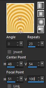 Sunburst / Repeticiones = 23 / punto central: 48/54 / punto focal =