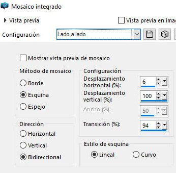 Efectos / Efectos de imagen / Mosaico integrado -
